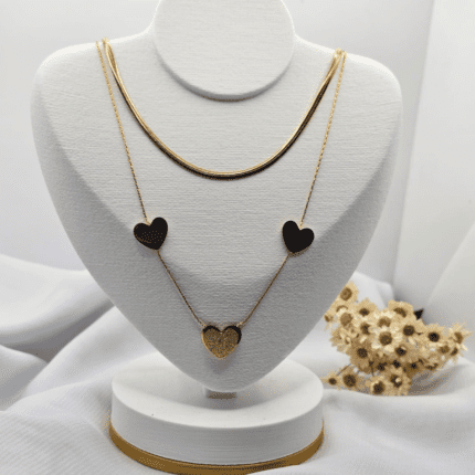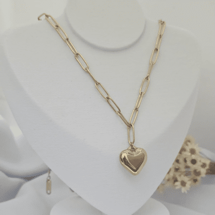 Cordão de Aço Dourado Cadeado com Pingente de Coração