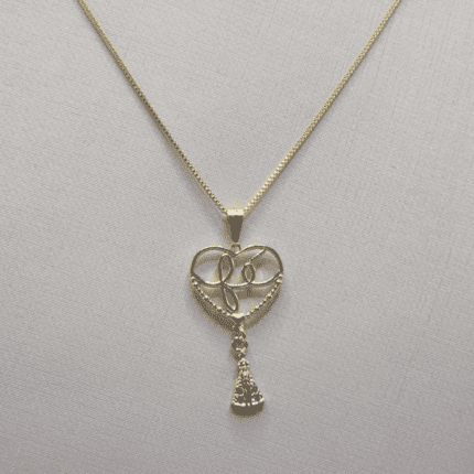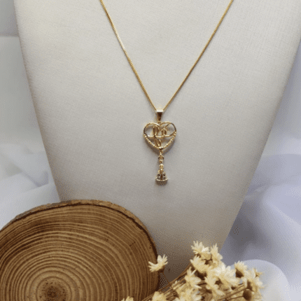 Cordão Folheado a Ouro Coração “Fé” com Pingente Nossa Senhora Aparecida Cravejado