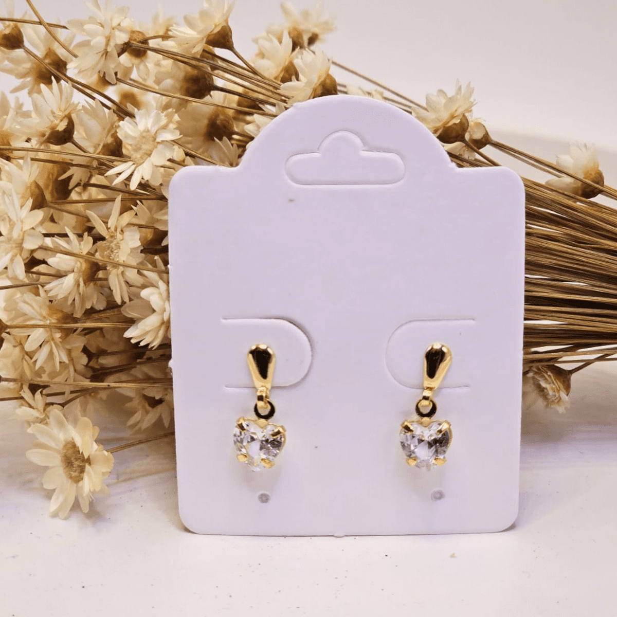 Brinco Coração Cristal Pendente – Folheado a Ouro