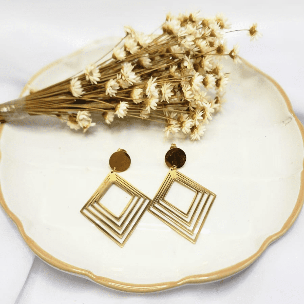 Brinco em Aço Inox Dourado – Modelo Geométrico Losango Vazado