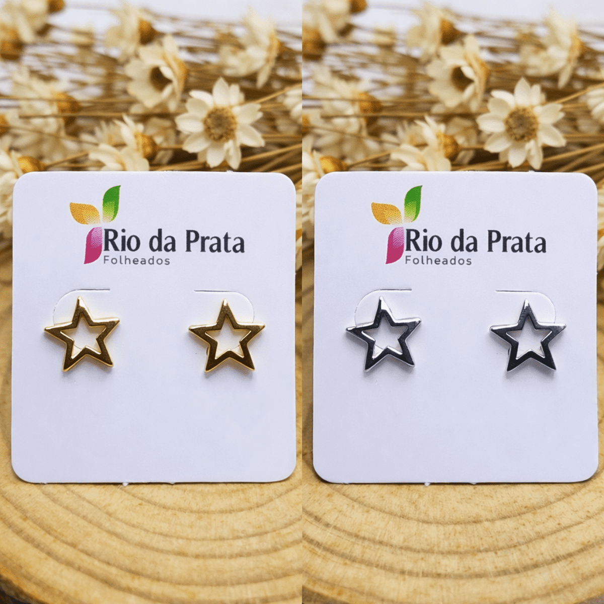 Brinco Estrela Vazada em Aço – Variações Dourado e Prata