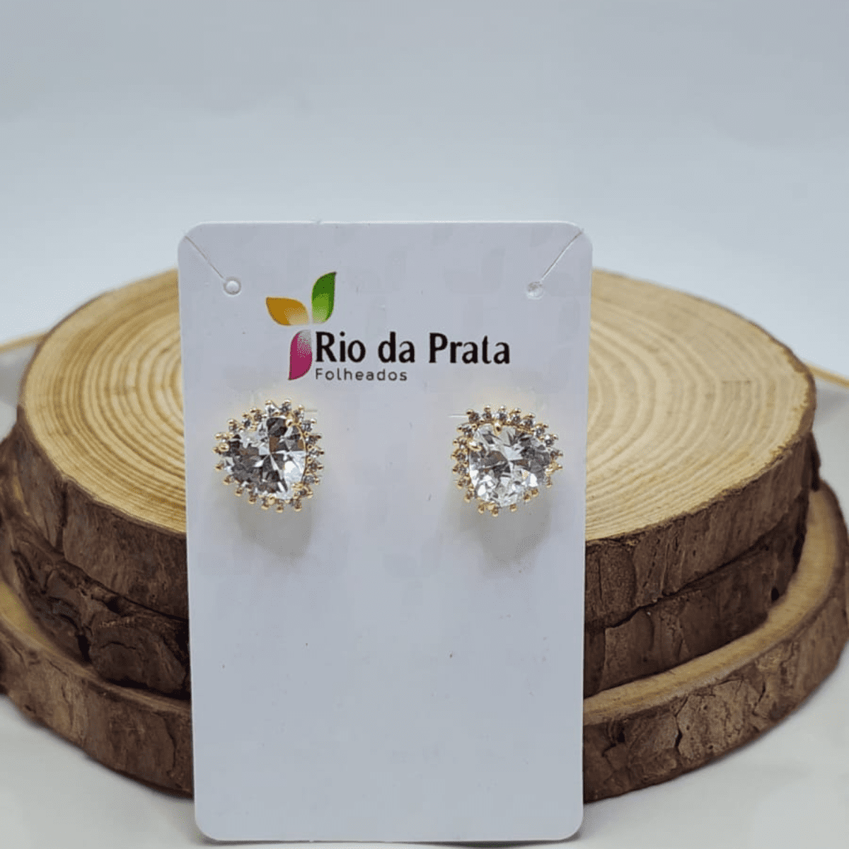 Brinco Folheado a Ouro Ponto de Luz com Cristal e Halo Cravejado