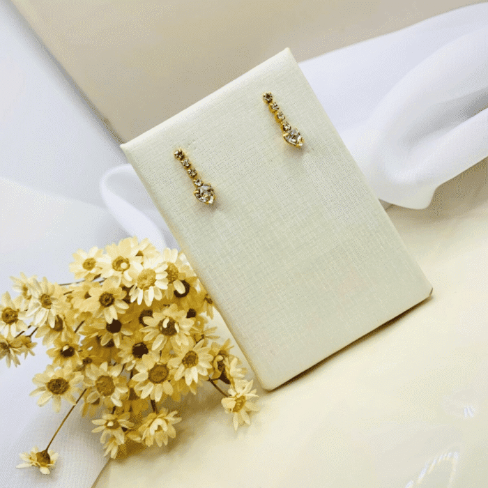 Brinco Feminino Ponto de Luz Dourado – Com Fileira de Strass e Elegância Discreta