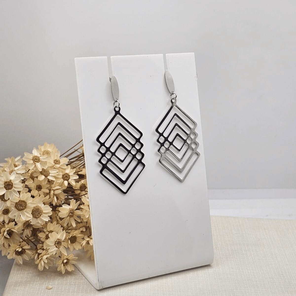 O Brinco Geométrico Alongado em Aço Inox traz elegância e modernidade em uma peça leve, versátil e sofisticada. Seu design com formas geométricas sobrepostas e estrutura alongada valoriza o rosto e adiciona um toque de estilo contemporâneo ao visual.