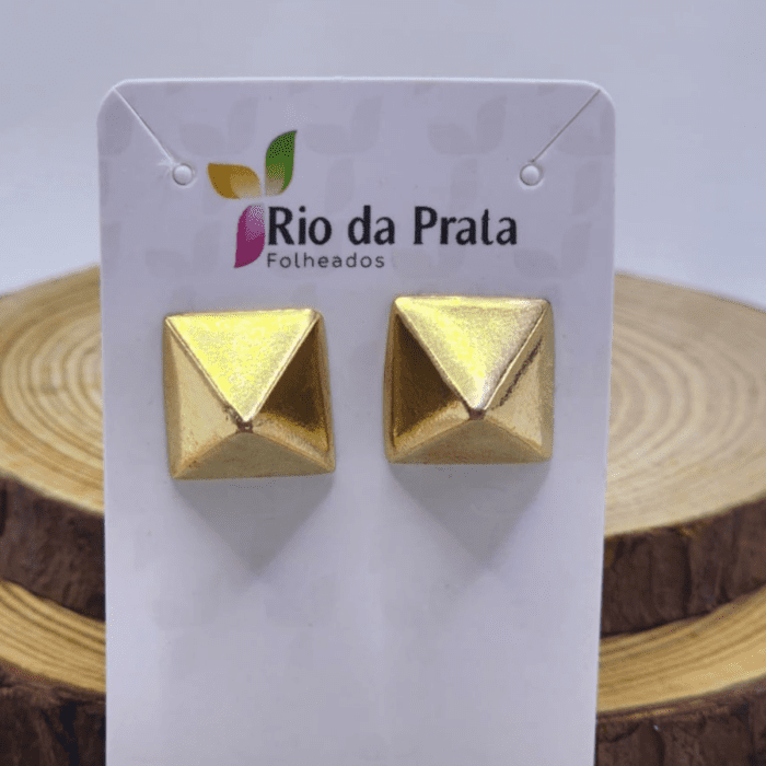 Brinco Quadrado Pirâmide – Folheado a Ouro