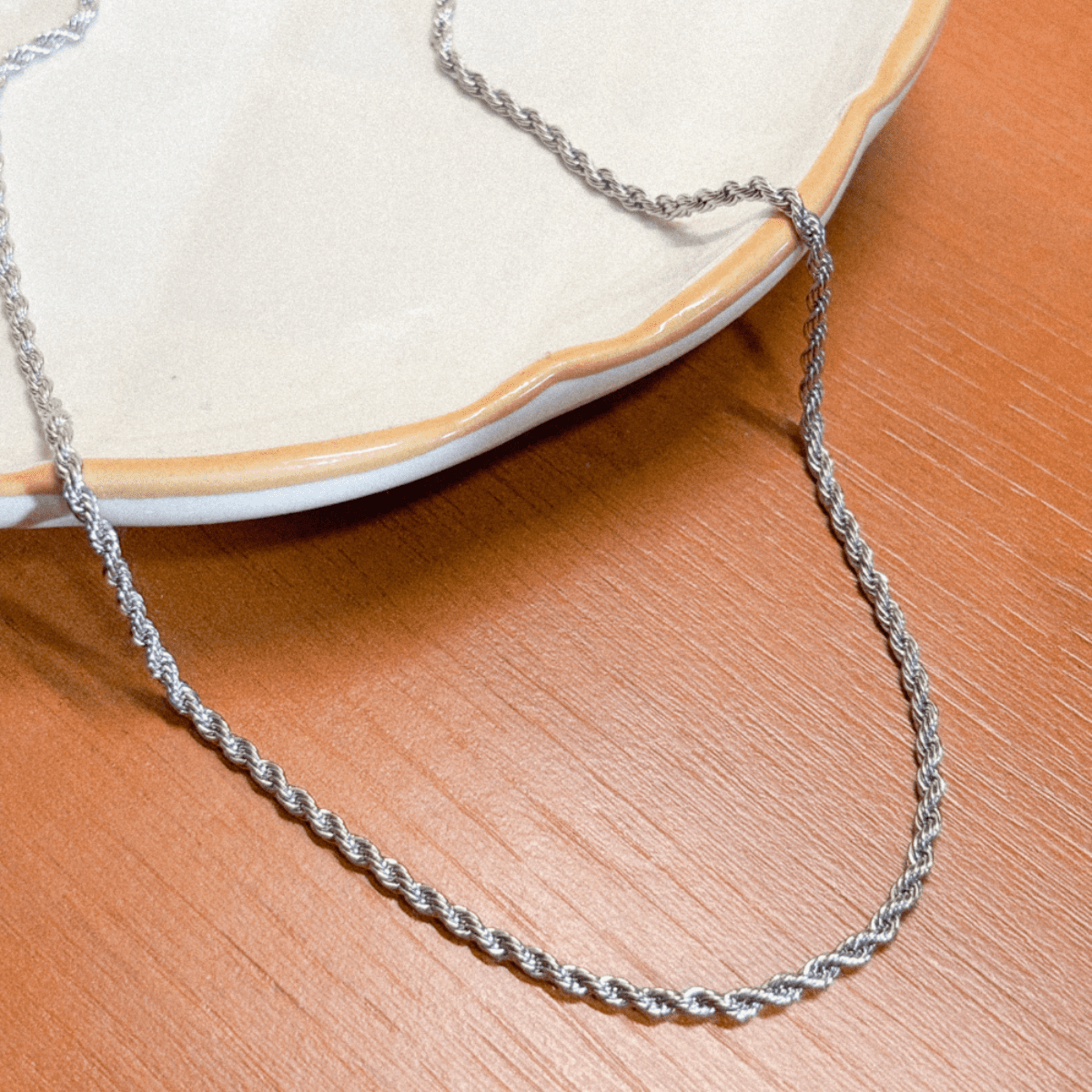 O colar baiano fino em aço inox é o acessório ideal para quem busca elegância discreta com alta durabilidade. Com sua corrente torcida delicada, traz um toque sofisticado ao visual, podendo ser usado sozinho ou com pingentes.