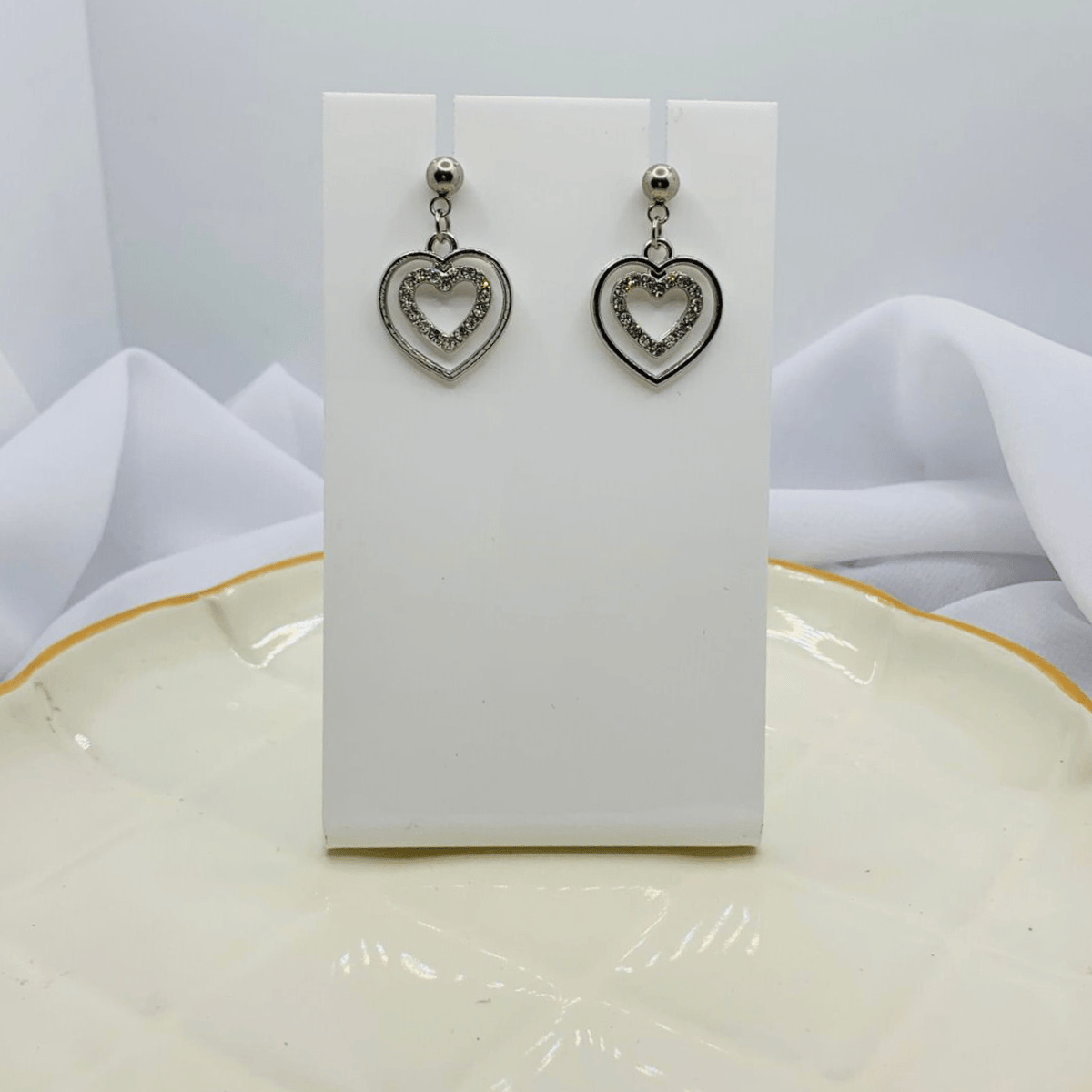 1 par de brincos combinando (modelo coração duplo com brilho)