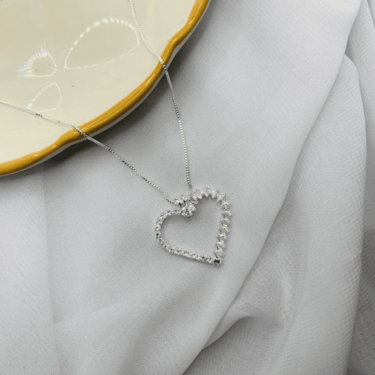 Conjunto Folheado a Prata com Coração Cravejado – Colar e Brincos Femininos