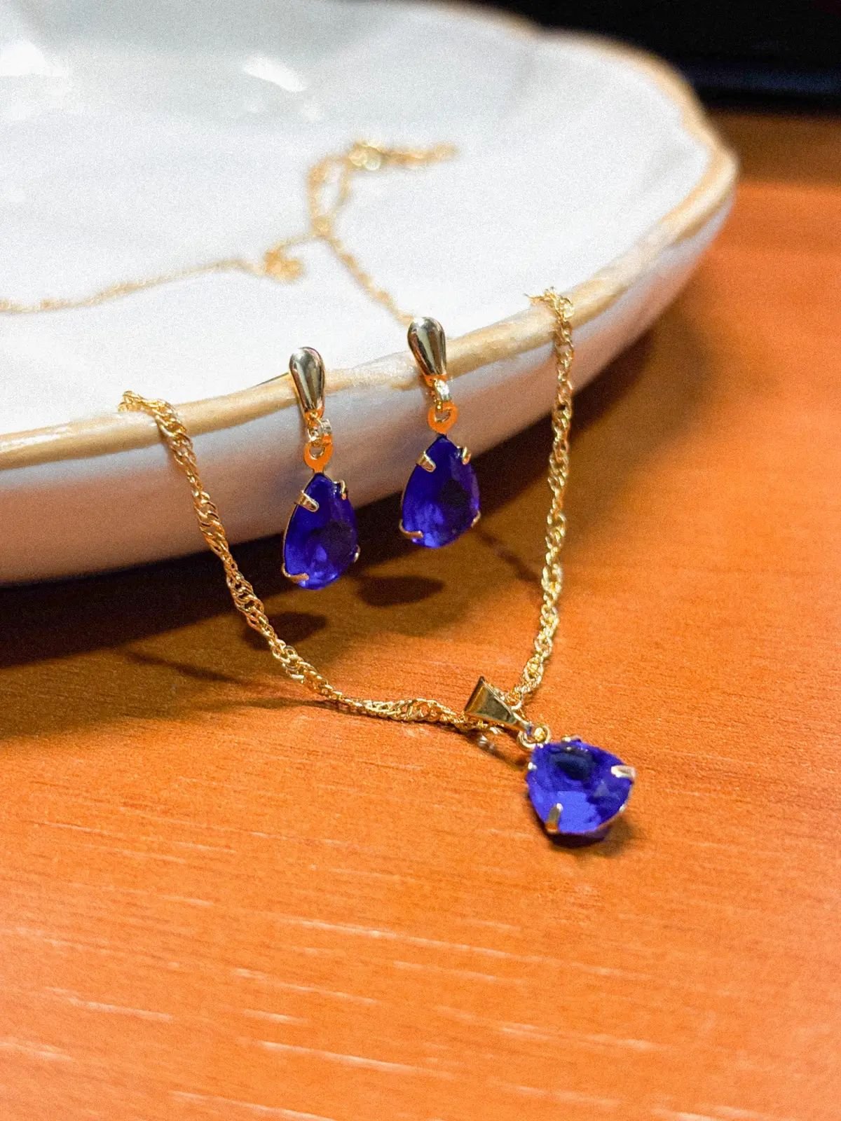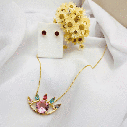 Elegante e cheio de charme, este conjunto feminino folheado a ouro traz um design clássico com toque moderno. Composto por um colar com pingente em formato de gota pendurada e brincos combinando, é a escolha perfeita para quem ama brilho na medida certa.
