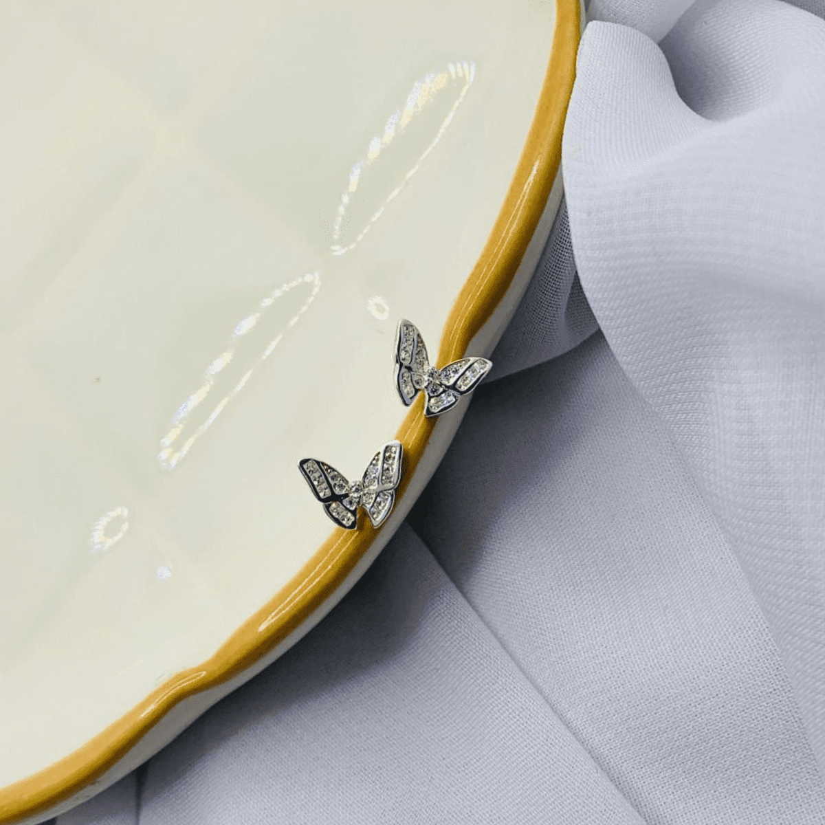 1 Par de brincos em Prata 925 com design de borboleta cravejada