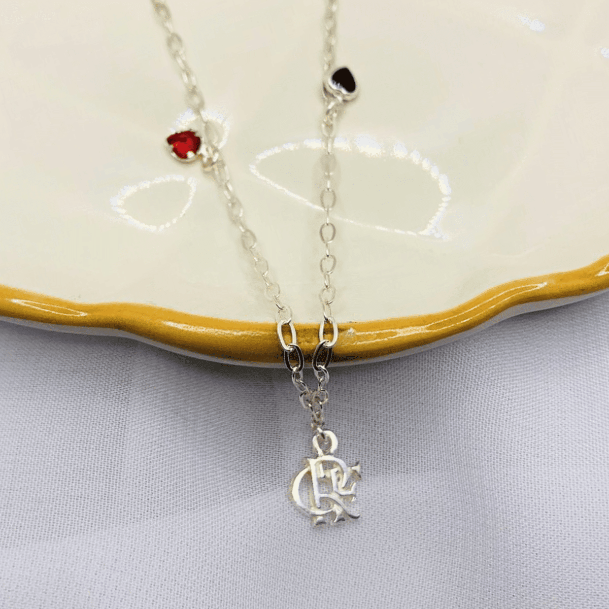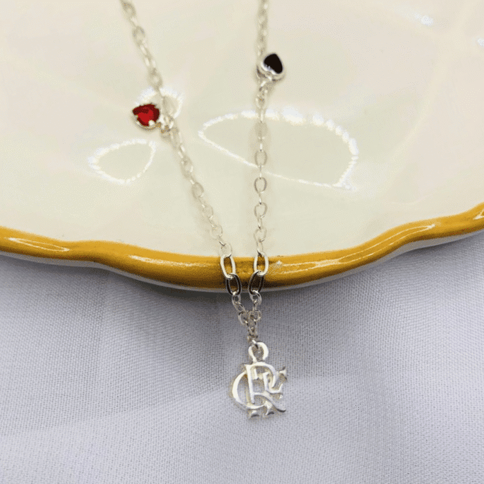 Colar Feminino Flamengo Prata – Corrente com Pingente do Clube e Detalhes em Cores Oficiais