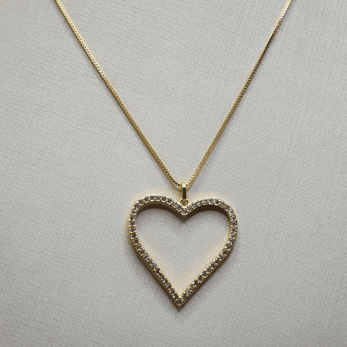 Cordão Folheado a Ouro com Pingente Coração Vazado Cravejado