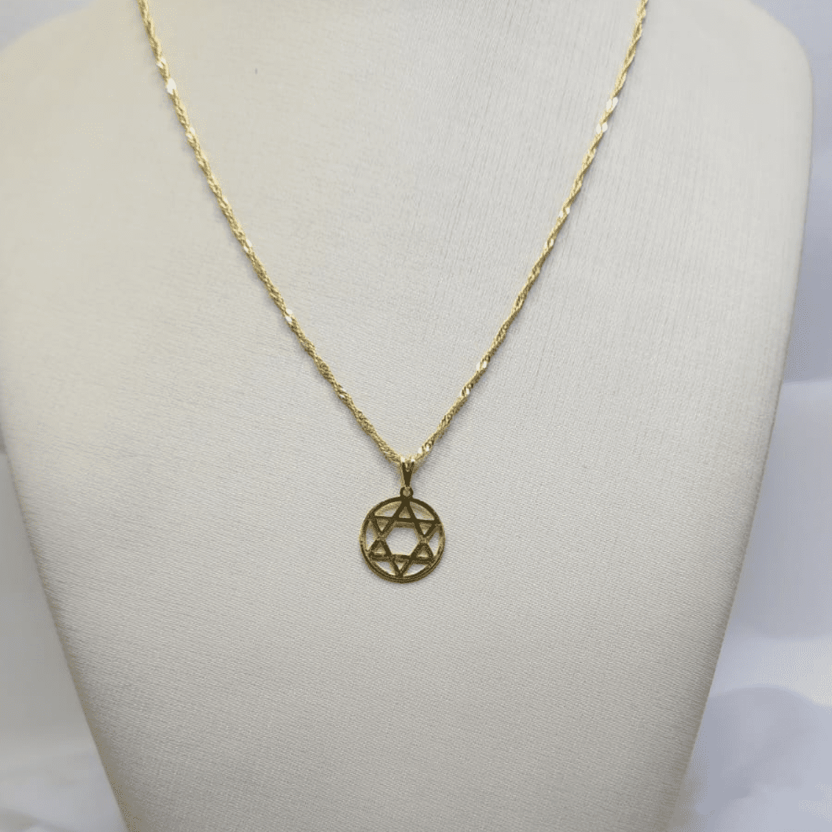 • Pingente: Medalha redonda com estrela de seis pontas vazada