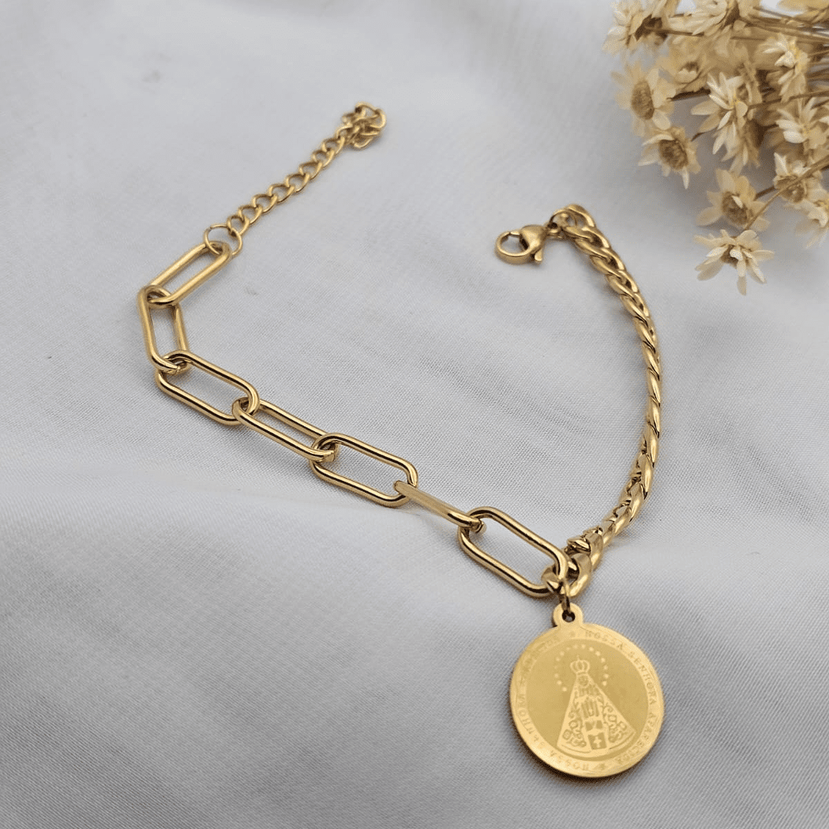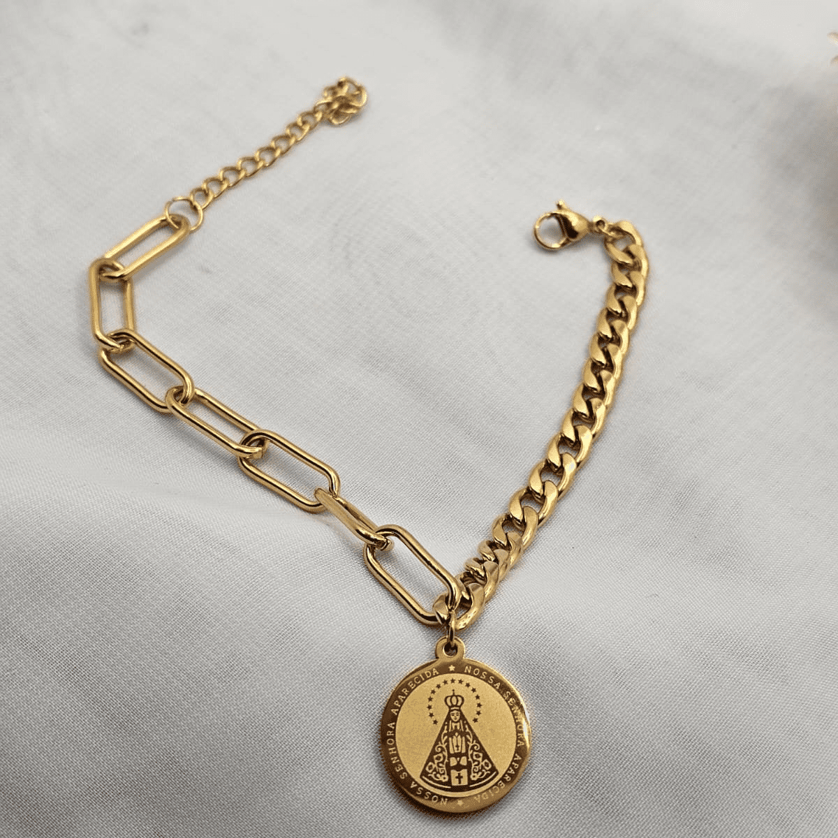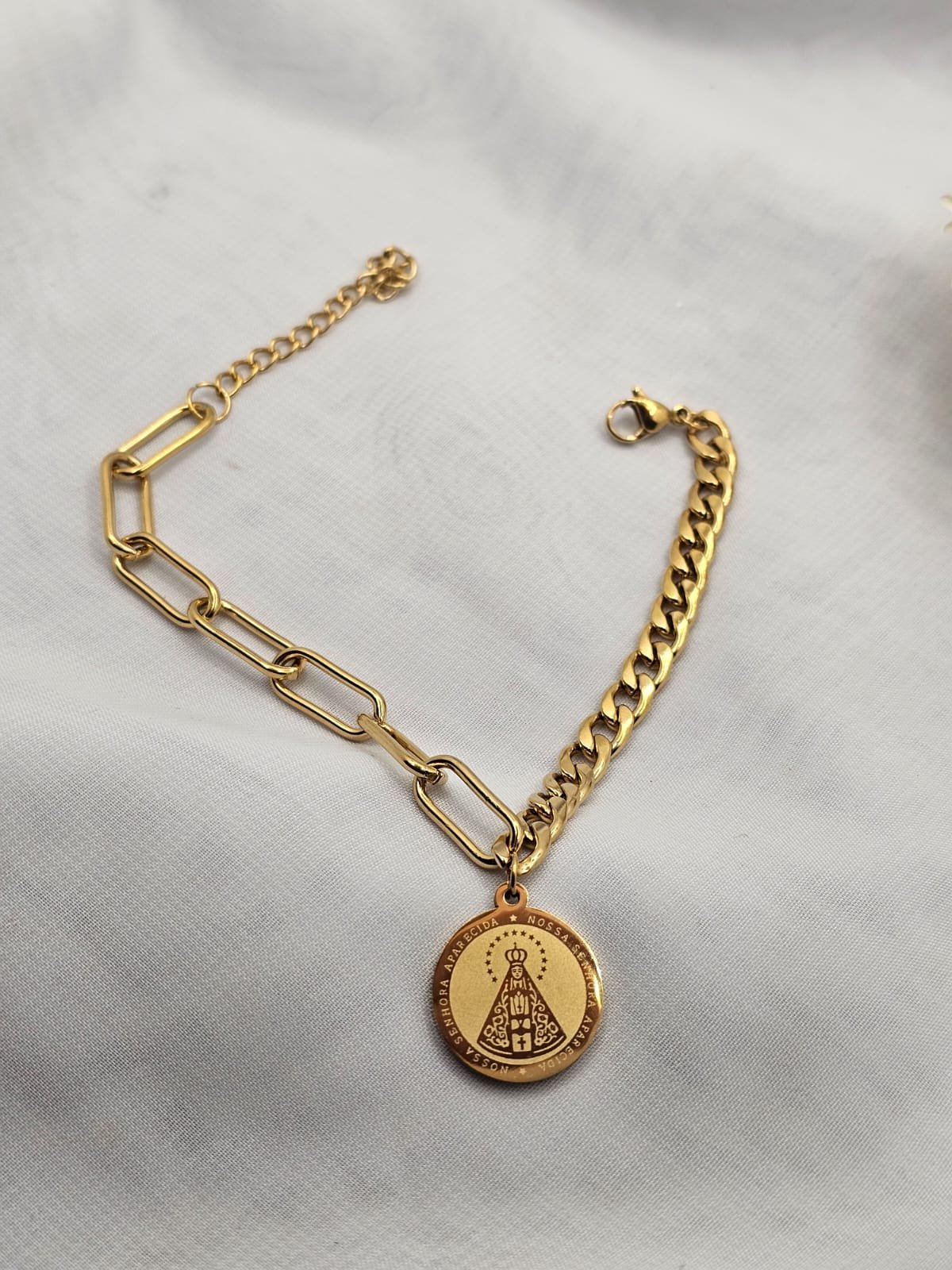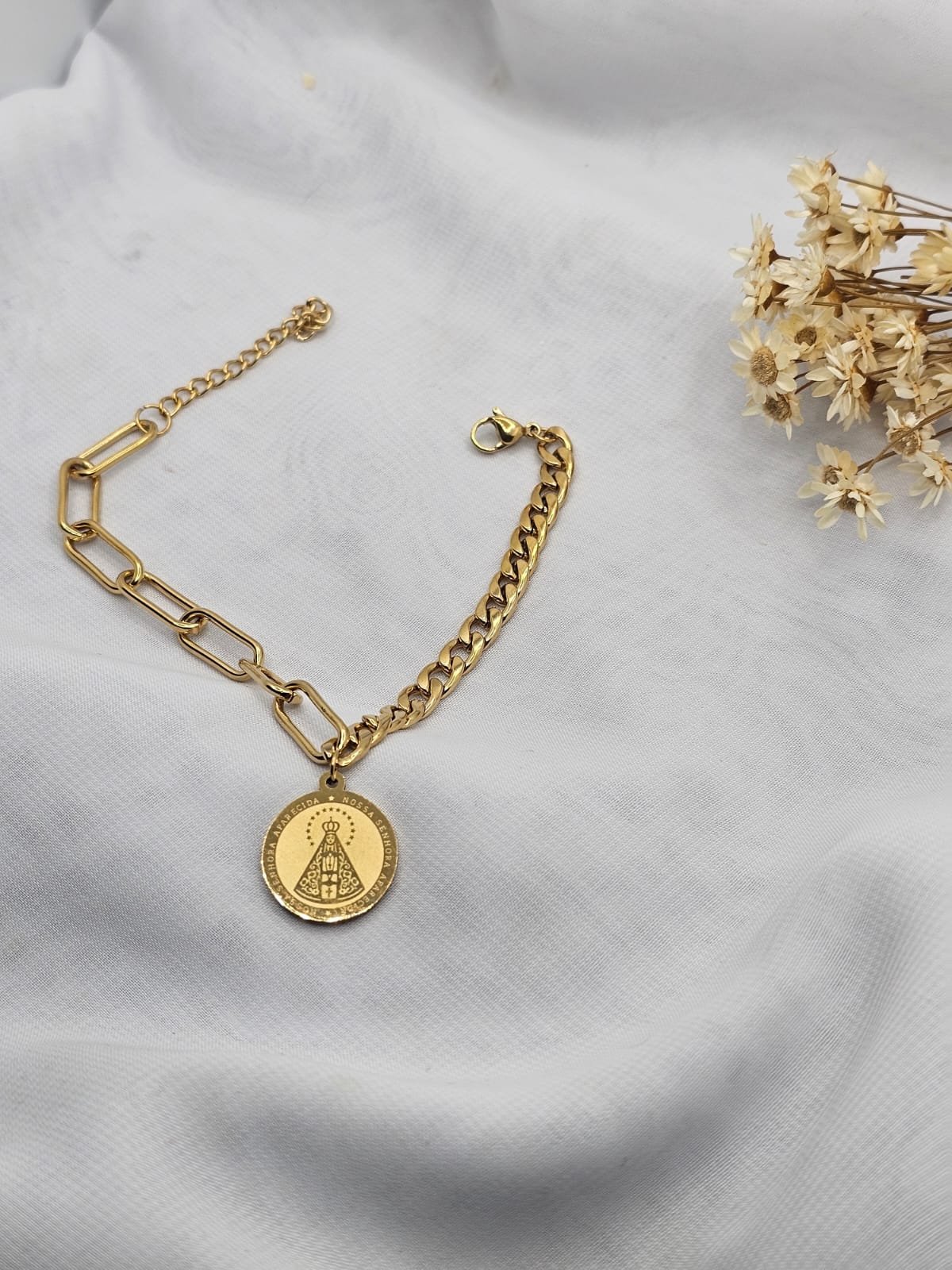 A Pulseira de Aço Nossa Senhora Aparecida é um acessório delicado que une fé, proteção e elegância em uma única peça. Produzida em aço inoxidável de alta qualidade, ela oferece durabilidade, brilho duradouro e excelente resistência ao uso diário.