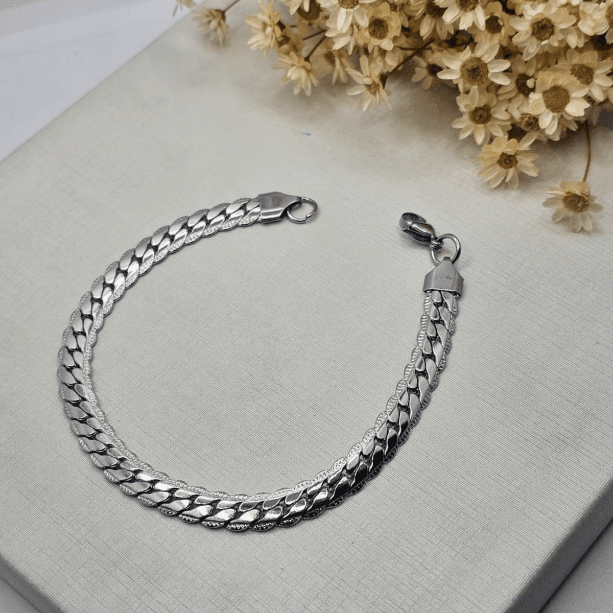 Pulseira em aço inox com design grumet dupla, acabamento prateado e visual moderno, ideal para uso diário. Possui 21 cm de comprimento e fecho tipo lagosta, oferecendo praticidade e boa segurança no pulso. Ótima opção para compor looks casuais ou mais alinhados, além de ser uma excelente escolha para presente.