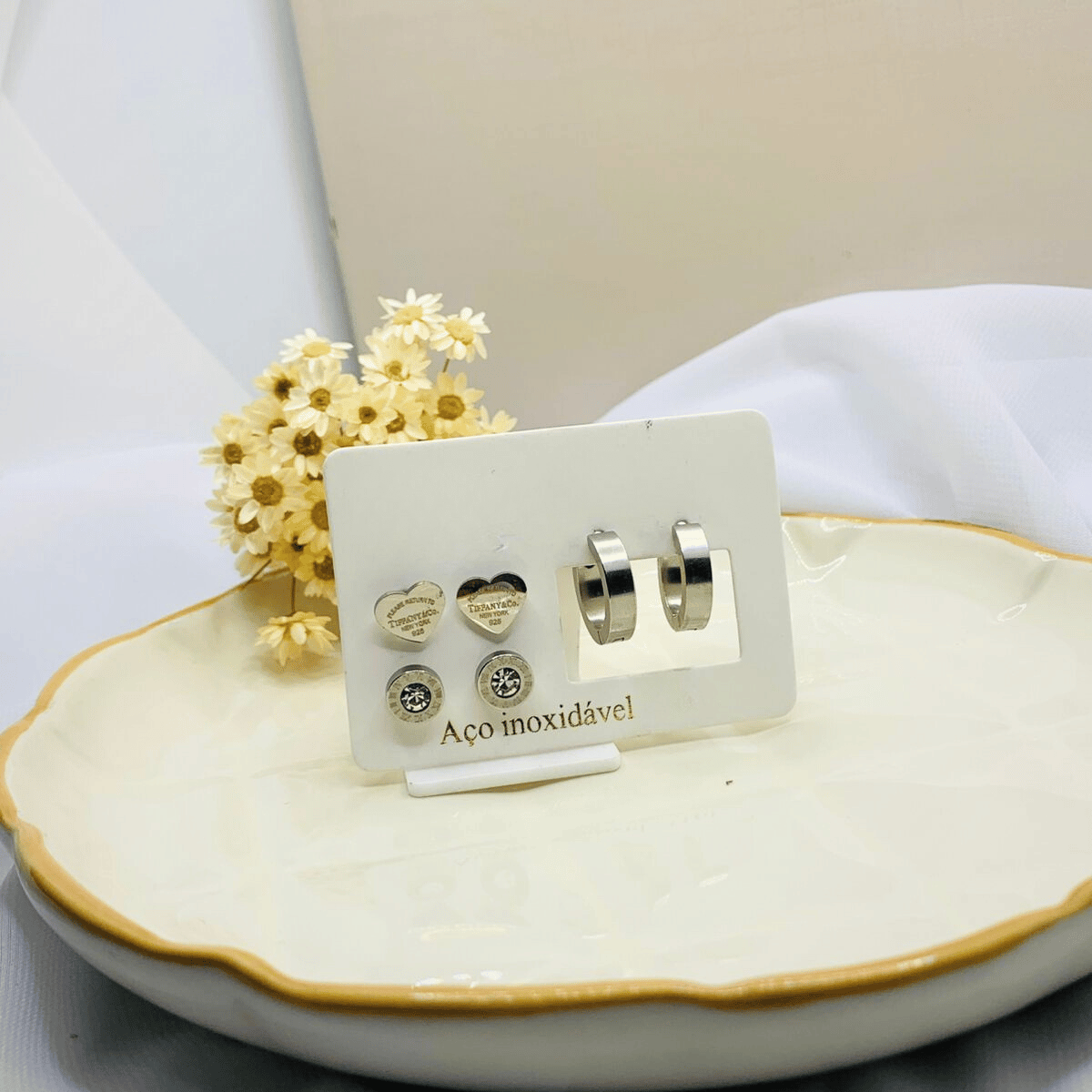 Versatilidade, brilho e durabilidade em um só kit! Esse trio de brincos em aço inoxidável é perfeito para quem gosta de variar o estilo com praticidade. O conjunto inclui: